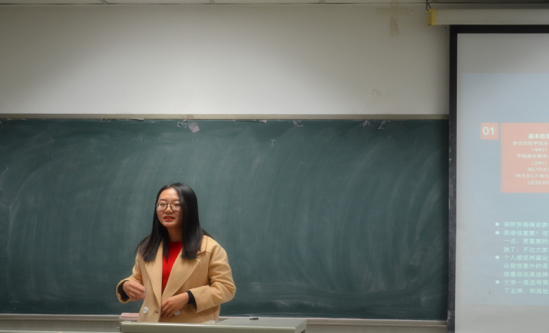 接下来上台的蔡媛青学姐分享了她如何一步一趋进入清华的学习历程,她取得的成就给同学们莫大的鼓舞。媛青学姐平时将绝大多数的时间都用在了刻苦学习上,成功通过学术保研进入了中国人民大学,进入人大后仍毫不懈怠,锐意进取,积极发表学术论文,参加研讨活动并获得了众多奖项,现已成功考入清华大学公共管理公司攻读博士学位。媛青学姐建议同学们尽早明确毕业去向,选择符合自身条件的道路去奋斗。“尊敬自己员工的身份,做好该做的事”,这份由媛青学姐体现出的执着精神,深深地触动了同学们。