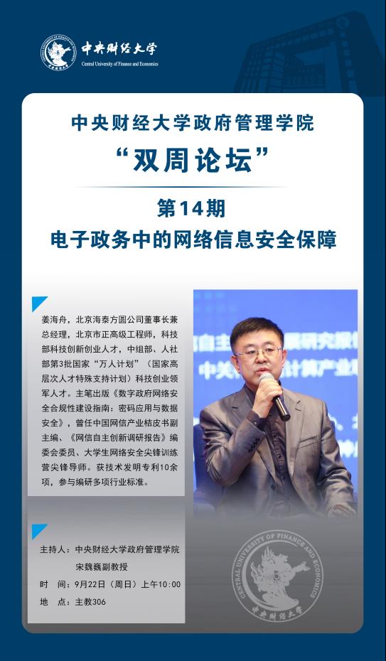 主讲人简介:姜海舟,北京海泰方圆公司董事长兼总经理,北京市正高级工程师,科技部科技创新创业人才,中组部、人社部第3批国家“万人计划”(国家高层次人才特殊支持计划)科技创业领军人才。主笔出版《数字政府网络安全合规性建设指南:密码应用与数据安全》,曾任中国网信产业桔皮书副主编、《网信自主创新调研报告》编委会委员、老员工网络安全尖锋训练营尖锋导师。获技术发明专利10余项,参与编研多项行业标准。