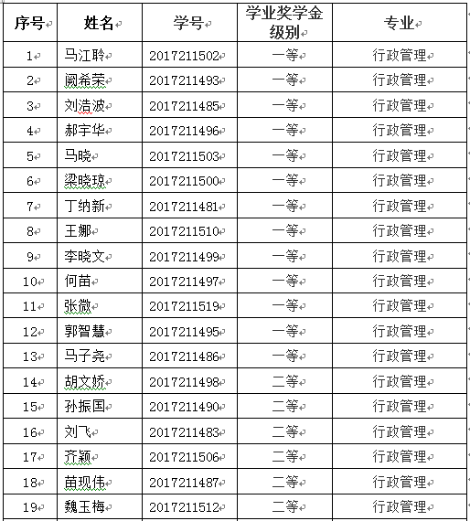 三、2017级公共管理专业硕士研究生学业奖学金获奖名单
