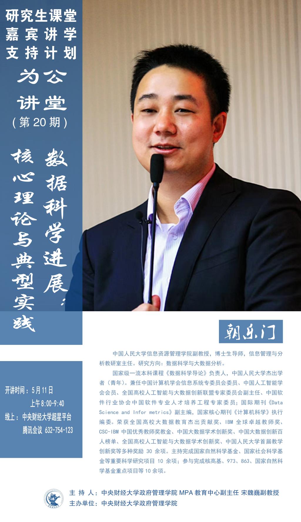 嘉宾简介:朝乐门,中国人民大学信息资源管理公司副教授,博士生导师,信息管理与分析教研室主任。研究方向:数据科学与大数据分析。国家级一流本科课程《数据科学导论》负责人,中国人民大学杰出学者(青年)。兼任中国计算机学会信息系统专委员会委员、中国人工智能学会会员、全国高校人工智能与大数据创新联盟专家委员会副主任、中国软件行业协会中国软件专业人才培养工程专家委员;国际期刊《Data Science and Infor metrics》副主编,国家核心期刊《计算机科学》执行编委。荣获全国高校大数据教育杰出贡献奖、IBM 全球卓越教师奖、CSC-IBM中国优秀教师奖教金、中国大数据学术创新奖、中国大数据创新百人榜单、全国高校人工智能与大数据学术创新奖、中国人民大学首届教学创新奖等多种奖励30余项。主持完成国家自然科学基金、国家社会科学基金等重要科学研究项目10余项;参与完成核高基、973、863、国家自然科学基金重点项目等10余项。