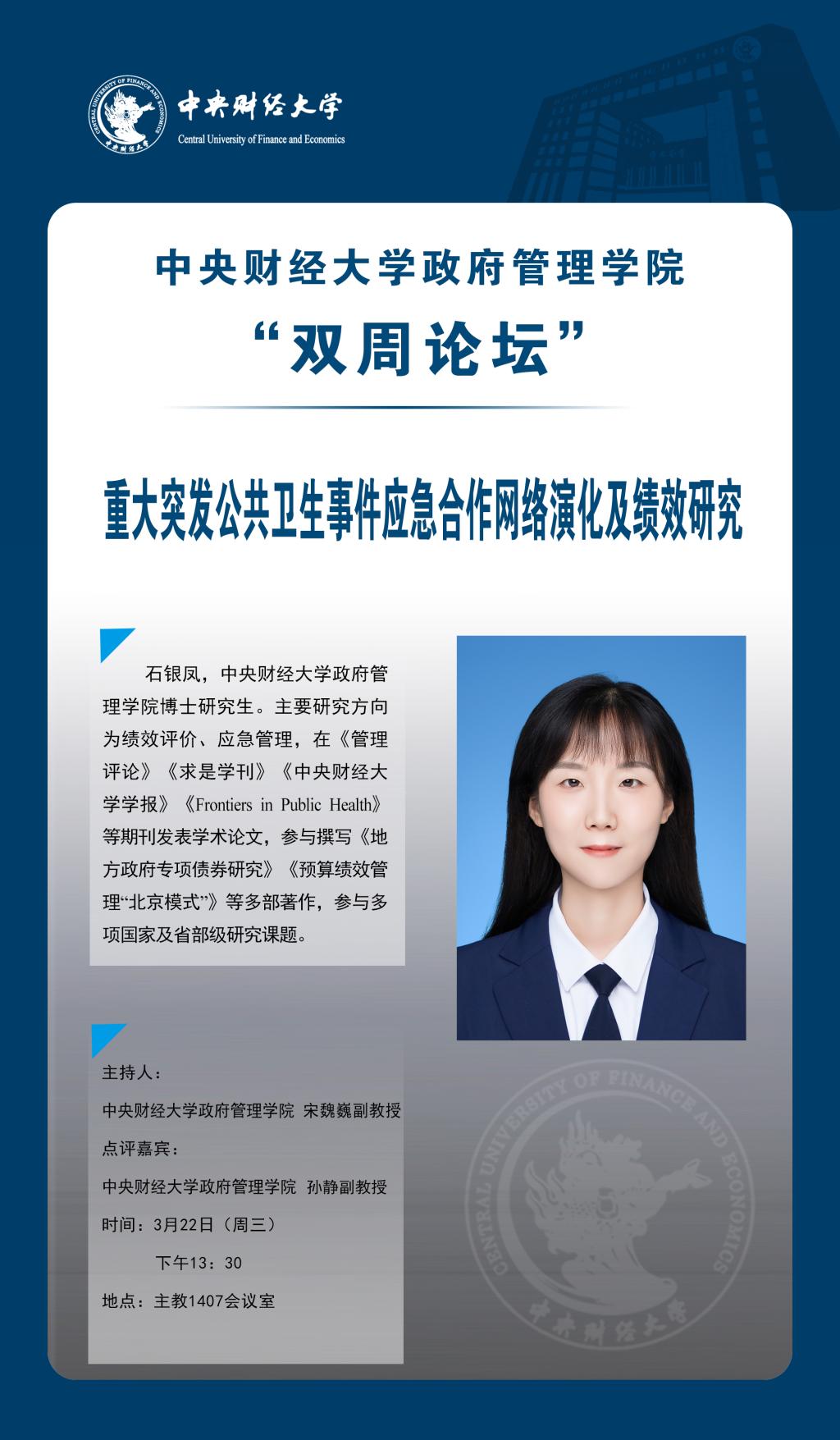 ●讲座主题:重大突发公共卫生事件应急合作网络演化及绩效研究
