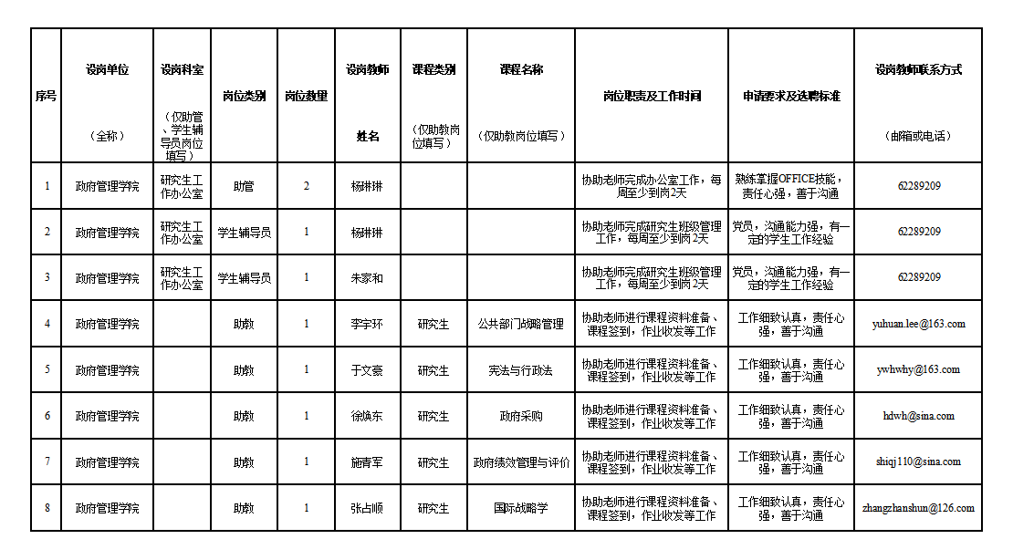 2023-2024学年第二学期“三助一辅”设岗情况表