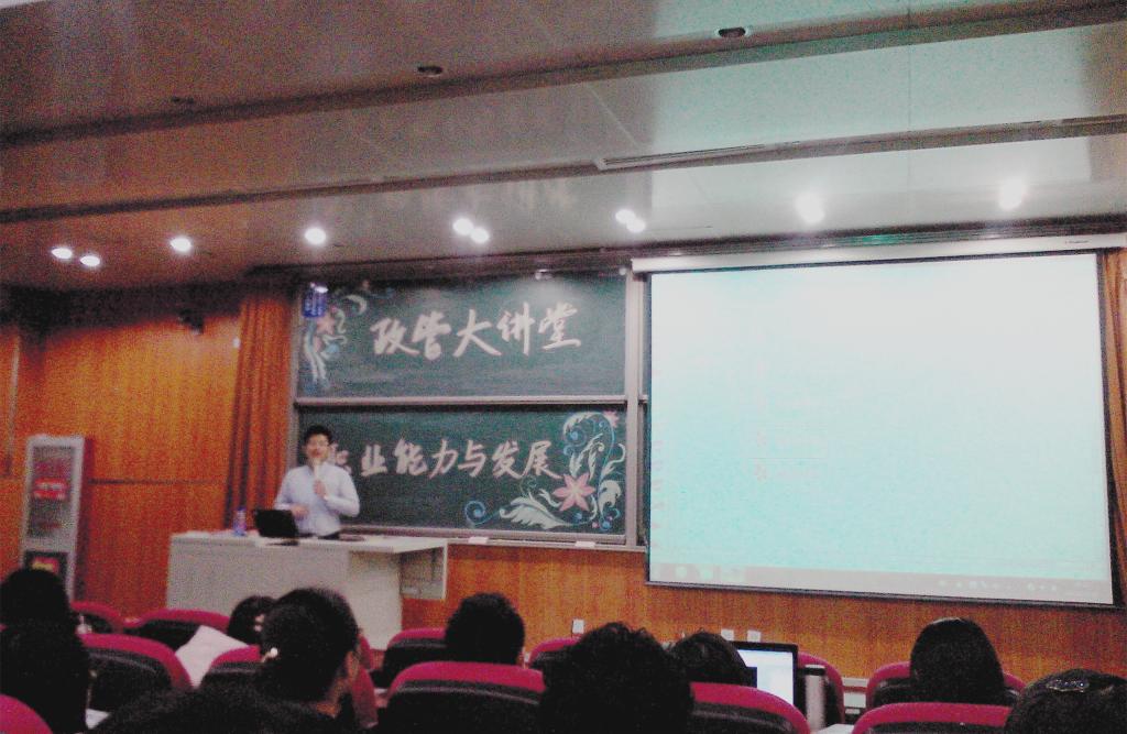 讲座一开始,牛老师就“人生目标”这一话题向我们阐述了四类人群的不同人生格局。同时,他提出三个核心法则解释了现实生活中的三大主要竞争。并用清华老员工与乐山师范生作比较告诉大家求职的重要性、复杂性、激烈性及其重大影响。整场讲座中,牛老师采用了ppt,图表,求职短片以及微电影广告等丰富形式,并多次列举现实案例向我们生动说明如何培养企业职业能力,促进老员工的发展。牛老师幽默风趣的语言掀起了会场一个又一个的高潮。演说完毕后,牛老师勉励大家,在大学期间多参与课外实践活动,为以后走上工作岗位打好基础,至此活动圆满结束。最后,到场人员与牛老师进行了合影留念。