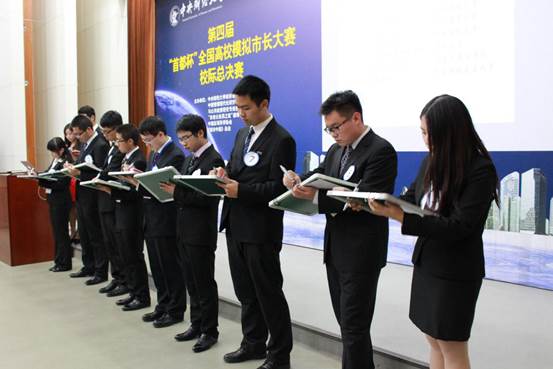 11月30日下午13:30,第四届“首都杯”全国高校模拟市长大赛在球王会体育官方网站沙河校区公司楼4号楼107教室开赛。本次大赛由球王会、中国管理现代化研究会政府战略与公共政策研究专业委员会、“未来公务员之家”德育示范基地共同举办,由《城市中国》杂志独家赞助,中国区域协会学术支持,来自全国8所高校的9支队伍参加了本次大赛。大赛也得到了球王会体育官方网站员工处、教务处、公司办公室、教学技术服务中心、团委等职能部门大力支持。
