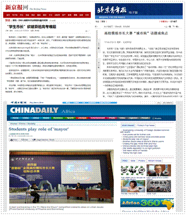 各队用独具特色的宣传片凸显团队的风采,彰显个性活力。“Dream High”队关注社会热点,聚焦北京市教育资源不均问题,研究异地高考制度方法,并为北京异地高考政策提出自己的独到的见解和解决措施;“首都护卫队”视角独特,思考北京市公共安全,探索城市安全反恐新思路;“城市中国研究会”队深入思考,以圆明园为切入点探寻北京市名胜古迹的文化价值挖掘与旅游经济开发结合的新道路;“南开智慧城管”队别出心裁,结合微博调研进行创新的实践探索,分析天津交通问题;“希贤队”关注当下,研究武汉市居民垃圾分类收运问题;“New Banner”队结合当前广州现状,关注广州非裔黑人,为建设和谐、开放、包容的社会提出自己的想法;“Champion”队眼光独到,以动物园服装批发市场为例,研究北京企业转移后地区后续规划问题。各位“市长”关注社会热点问题,针砭时弊,大胆诉说自己的施政蓝图。
