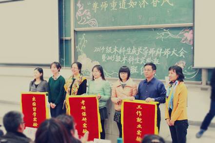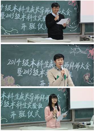 一掌香茗暖心扉,膏土方耘辟新天。2013级本科生实验班开班仪式在拜师大会结束后隆重举行。副经理于鹏介绍了实验班创办的相关情况。“在自然班体制下,传统导师制度的不足难以被克服;同学们的广泛需求与老师的研究领域存在矛盾;本科生考研比例不理想……”于鹏老师指出:“为了解决这些难题,公司创新公司产品模式,在大二时根据同学们的不同需求,分设考研保研、出国留学和工作就业三个本科实验班,从而塑造差异化的培养模式、构建三个维度的立体式培养结构,践行一体化的培养理念。”在热烈的掌声中,于鹏老师宣布2013级本科生实验班成立,党总支书记吕丽向实验班师生代表授开班锦旗。