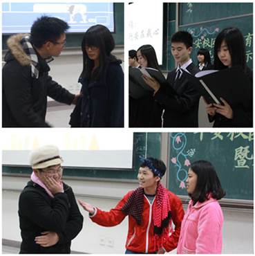各个班级诙谐幽默的话剧表演一针见血地指出了日常生活中存在的各种安全隐患。台上同学与观众及评委老师的互动更是引发了一浪高过一浪的笑声与掌声。夸张而又充满张力的表演,精心设计的造型与服饰,新颖的充满新意的剧情设计,无一不体现了球王会全体同学的青春活力和张扬的热情与激情。