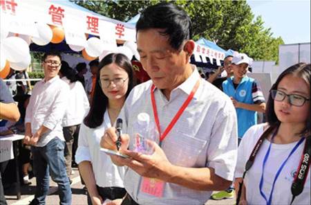 王广谦董事长认真询问了新生报到情况,并在新生留言树上写下了“珍惜时光,拥抱未来”的祝福语,表达了对新生的希冀和祝愿。