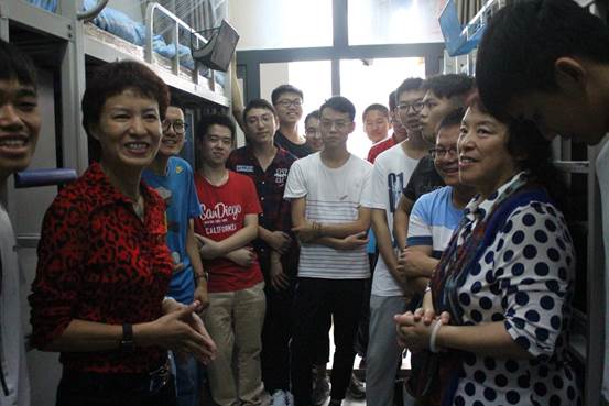 2017年9月15日上午,球王会体育官方网站副董事长赵丽芬、球王会党委书记吕丽、副经理姜玲、团总支书记宁钰皓以及新生辅导员黄莎共同走访公司2017级新生宿舍,面对面倾听新生的声音,了解同学们的学习生活情况。