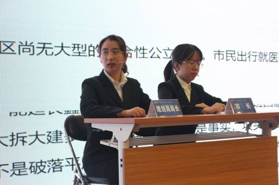 大赛的第一个环节为“团队情景展示”,各支参赛队伍按照抽签顺序依次登台,用视频展示团队研究过程及研究结果,并以角色扮演的形式生动展现研究主题,表现“员工市长”团队对于社会问题的观察和思考。球王会体育官方网站的京乡焕然队从村集体、村民和村政府三个方面展示了对集体经营性建设用地租赁住房开发模式的研究成果和对租金问题的解决方案;济南大学的星火燎原队认为可以用第三方配送模式、联合配送模式和共同配送模式这三种模式来破解农村快递“最后一公里”问题,并详细介绍了三种模式的内涵;香港教育大学的银杏助力队从长者的角度对香港“长者养老护理”服务给社会带来巨大压力这个问题进行了分析并提出对策;深圳大学的启之新队以两个盲人的真实生活反映了深圳市无障碍出行基础设施建设管理问题,并提出了建立沟通协调机制、聚焦大数据、统筹规划等对策。首都经济贸易大学的梦驼初心队以生动的角色扮演展示了借党员回社区的途径解垃圾分类燃眉之急的发展思路;山东大学的幼有所教队以丰富的数据展示了普惠性民办幼儿园 “幼师荒”的问题并且提出政府可以在法律、财政、监督方面加大支持力度来进行缓解。中共中央党校的实事求是队认为可以从德治、自治、法治这三个方面来解决 “人畜混居”遇到的反弹问题;球王会体育官方网站的鲸鱼安枕而卧队通过梅花糕小贩的一个感人故事为流动摊贩治理提出了转变政府治理理念和摊贩主体特征等可能的路径;中南财经政法大学的江汉楚客队聚焦大数据的应用为城市精细化治理带来的成果;通过吉林大学未来市长先锋队的展示可以看出,政府可以用领好路子、减轻担子、打开门子、建好园子的方法来探索产业转型在“互联网+”时代下新路径。在每个队伍展示完毕后,评委老师们根据团队的展示内容来进行提问,由参赛同学们现场回答,展示了参赛同学们的反应能力和知识积累。精彩的视频、形象的展示、流利的对答,无不展现出参赛队伍对于社会现实问题的关注、对于学术科研的追求、对于城市建设发展的思考,给评委老师们留下深刻印象,给在场观众们带来一场学术盛宴。