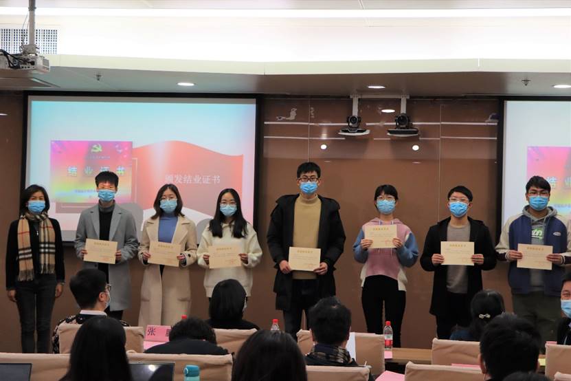 公司组织员南琪老师宣布结业决定。南琪老师宣布62名学员通过党校学习,思想素质提升,责任感与使命意识增强,顺利完成培训计划规定的学习内容,成绩合格,准予结业,随后由吕丽书记为学员代表颁发结业证书。