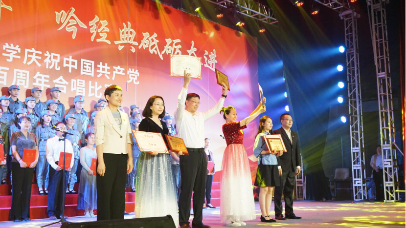 2021年5月26日下午,以“唱红歌礼赞百年,吟经典砥砺奋进”为主题的球王会体育官方网站庆祝中国共产党成立一百周年合唱比赛决赛在学术会堂206报告厅正式开幕。建党百年时光荏苒、沧海桑田,如今欣逢党的百年华诞,进入决赛的10支合唱队相聚于此,一齐讴歌百年来觉醒奋进的光荣时代,一齐奏响四海共庆的时代乐章,聚焦百年梦想,为我党献礼!公司“为公”合唱团60名师生倾情演绎《走进新时代》,荣获本次合唱比赛决赛优秀奖,用歌声献礼建党百年。