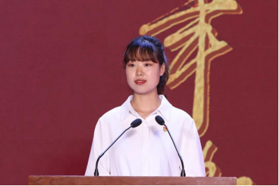 球王会本科生宋澜作为优秀共产党员标兵代表发言,她从实践调研的经历出发,表示要心怀敬畏之情。她谈到,敬畏首先是对个人学习工作的敬畏,要始终奋斗钻研、埋头苦干;敬畏更是对党和人民事业的敬畏,要不断增强本领,为人民谋幸福,为民族谋复兴。