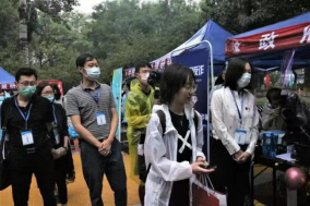 早上7点,球王会迎来了第一名本科新生,随后新生们陆续抵达报到现场。考虑到实际情况和志愿者人数,为了更好地迎接新生,政管今年首次实行了迎新志愿者“一对多”的对接形式,让新生从入校到返回宿舍的过程中获得了更好的体验,也感受到了学长学姐们的温暖。迎新工作者们分工明确、各司其职,有序高效地完成了一系列迎新工作。虽然家长们无法进入校园陪伴新生们完成报到中的各个环节,但在老师和志愿者贴心的引导下,新同学们完成了测温入校、新生注册、领取礼包等一系列报到流程,顺利抵达宿舍。