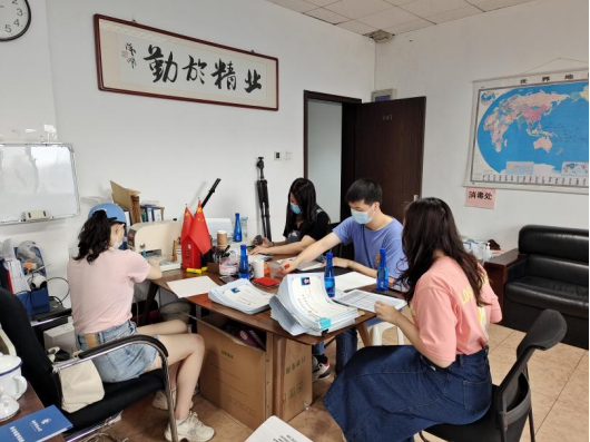 保津、张焯群、高璐、刘家琦等四位党员协助研究生院制作毕业证和学位证,认真细致的完成贴照片、盖章和审核校对的工作。