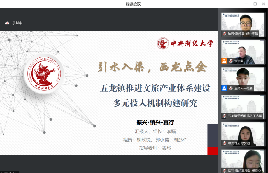 5月26日下午,公司“百年征程风华时 乡村振兴在路上”第一届乡村振兴调研大赛决赛通过腾讯会议云端举行。经初赛、复赛以及学术不端检测,9支队伍从44支参赛队伍中脱颖而出,进入决赛答辩。决赛中经过参赛者汇报、评委老师提问、点评和打分环节,公司2021级硕士研究生李磊、柳欣悦、郭小倩、刘彤晖4名同学在姜玲教授指导下完成的调研报告“引水入渠,画龙点‘金’:五龙镇推进文旅产业体系建设多元投入机制构建研究” 获得三等奖。