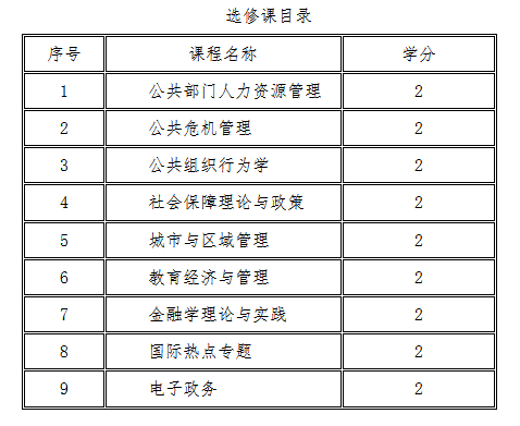 选修课是MPA研究生根据自身兴趣和需要选择学习的课程,从以下课程中进行选择,总计不少于10学分。
