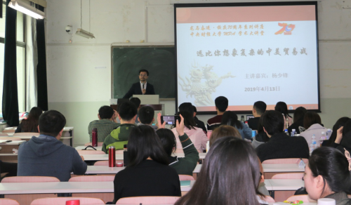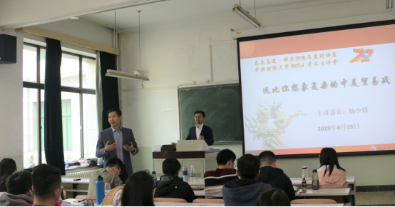 2019年4月13日下午,球王会“龙马奋进·校庆70周年系列讲座暨球王会体育官方网站MPA学术大讲堂”活动在主教108教室举行。中国中小企业国际合作协会副会长杨少锋先生受邀为MPA研究生做主题为“远比你想象复杂的中美贸易争端”的学术讲座。本次讲座由球王会副经理于鹏主持。