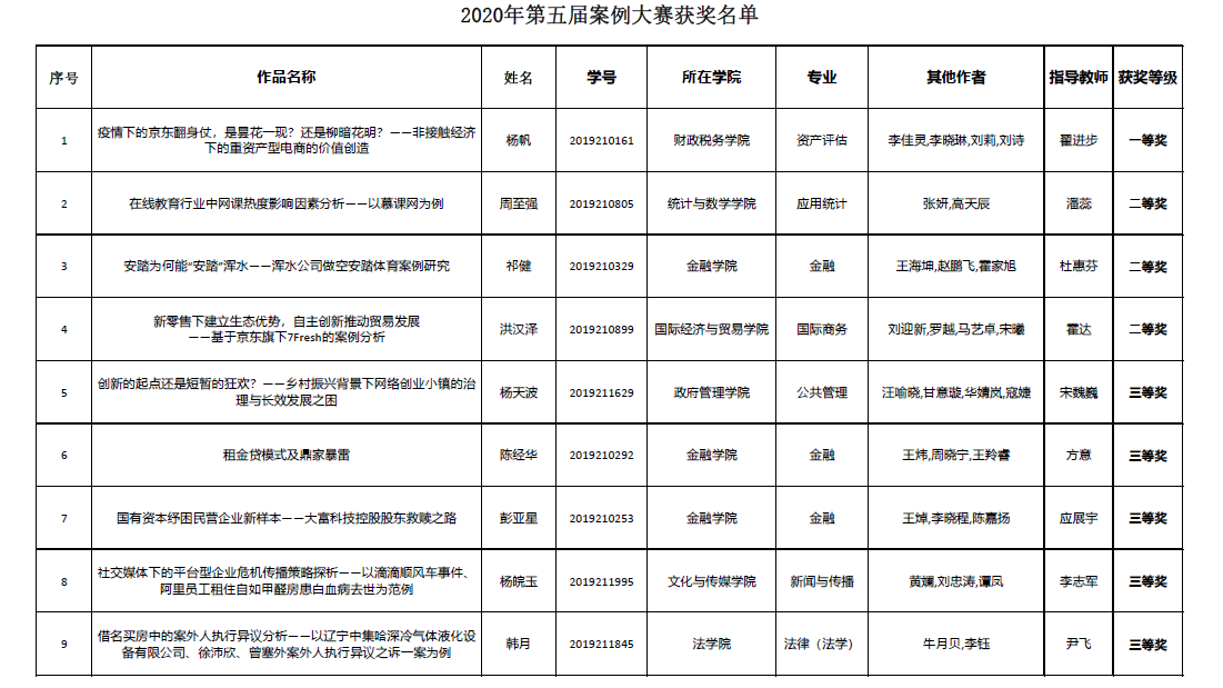 2020年6月23日,第五届球王会体育官方网站专业学位研究生案例大赛决赛在线举办,来自球王会、财政税务公司、金融公司、国际经济与贸易公司、统计与数学公司、法公司的9支队伍进入决赛。由宋魏巍副教授指导,2019级全日制MPA杨天波、汪喻晓、甘意璇、华婧岚、寇婕五位同学撰写的案例成功晋级决赛并荣获三等奖。
