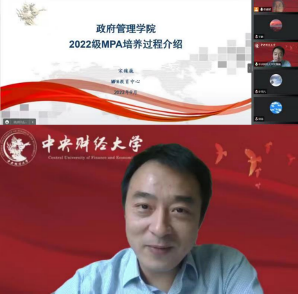 会议伊始,于鹏副经理发表了热情洋溢的致辞,代表公司对全体2022级公共管理硕士新生的加入表示热烈欢迎。他清晰梳理公司、公司的发展脉络,详细介绍中财MPA教育的成果和特色,鼓励同学们树立从理论和实践两方面共同构建中国特色公共管理学科体系的学习目标,并向新生提出树立价值意识、问题意识、理论意识“三个意识”,培养战略视野、全球视野、历史视野 “三个视野”的要求,期待同学们成为一名优秀的公共管理人才。