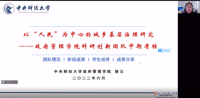 汇报首先由耿云副教授对其研究的课题——以“人民”为中心的城乡基层治理研究进行阶段性总结。在过去的一年中,该团队获批项目4项,其中国家自然科学基金项目1项,发表论文13篇,其中A类以上论文10篇。完成著作2部,成果获奖1项,共有4项成果获得相关政府部门的采纳与批示。随后耿云副教授对社区服务参与激励研究及志愿服务与中国老员工的心理幸福感等研究领域做了分享。
