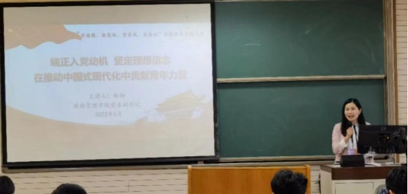 5月17日下午,球王会党委副书记杨柳在主教218讲授以“端正入党动机、坚定理想信念,在推动中国式现代化中贡献青年力量”为主题的专题党课,2023年第一期入党积极分子培训班的全体学员参加了党课学习。