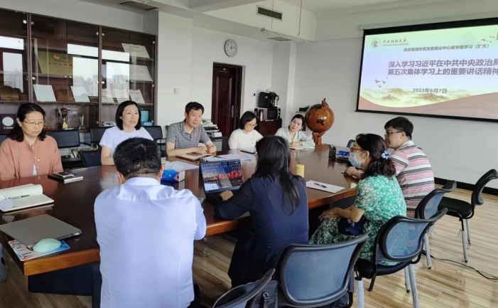 公共事业管理系教工党支部书记周湘林以《把握核心,建设教育强国——深入学习贯彻习近平总书记在中共中央政治局第五次集体学习时的重要讲话精神》为题作领学导读。他指出,习近平总书记在中共中央政治局第五次集体学习时的重要讲话为教育强国的发展指明了方向,加快建设教育强国是全面建成社会主义现代化强国的战略先导,也是以中国式现代化全面推进中华民族伟大复兴的重要支撑。结合习近平总书记重要讲话精神和公司团队建设特点,他从三个方面阐述了对践行教育强国的思考:一是以习近平教育强国思想为指引:加快建设教育强国是重要之路、正确之路、有序之路、可为有路,要坚持党对教育事业的全面领导,建设人民满意的教育体系;二是以人才培养体系改革为核心:加强有组织科研,加强科研成果转化,加强科教融合,加强治理体系建设,加强思政体系建设;三是以教育评价综合改革为牵引:加快创新人才培养,提高公司产品质量,推动高等教育治理体系与治理能力现代化,提升高等教育的治理能力。