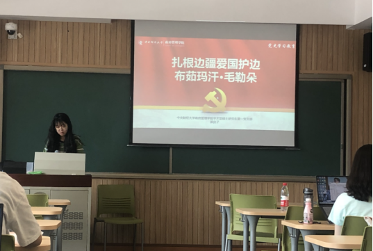 郝良子同志向我们讲述了“扎根边疆爱国护边——布茹玛汗·毛勒朵”的故事。作为第一批驻守边防的护边员,布茹玛汗·毛勒朵用五十年的时间丈量大地,在新疆冬古拉玛山的河谷、山坡,每走一段路就会发现刻有“中国”字样的石头,这都是布茹玛汗留下的属于中国的痕迹。即使现在已年逾古稀,她仍然尽自己可能,把护边员的故事讲给更多的人听。郝良子同志还提到边防人员总是在我们不知道的时候用实际行动,用献血和生命,打败一切来犯之敌,践行“大好河山、寸土不让”的铿锵誓言。