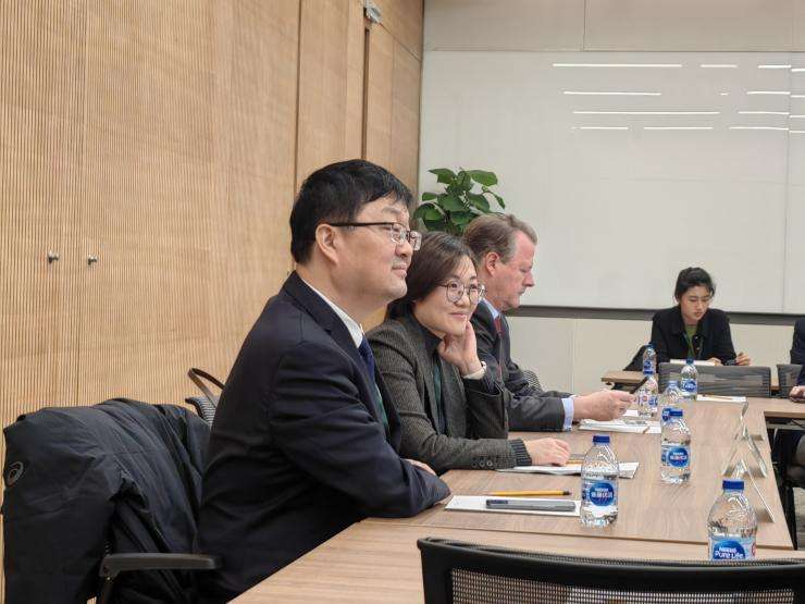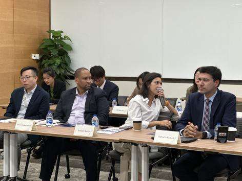 新开发银行主要部门的工作人员为实验班师生代表介绍了其所在部门的主要职能与活动。战略政策与合作局(Department of Strategy, Policies and Partnerships)的Amaani Bashir女士介绍了这一部门的基本工作以及新开发银行2022年至2026年的战略规划。风险管理局(Department of Risk Management)信用风险处(Division of Credit Risk)的首席专家(Principal Professional)Sidharth Kamani先生介绍了新开发银行战略的核心——风险管理,并且从风险防控的三条防线入手,介绍了新开发银行的信用风险工作。私营部门和非主权担保业务局(Department of Private Sector and Non-Sovereign Guaranteed Transactions)金融机构与市场处(Division of Financial Institutions and Markets)的Yawen Wu女士介绍了新开发银行的私营部门和非主权担保业务,私营部门和非主权担保业务局的首席专家Jingjing Han女士出席会议。财务预算与会计局(Department of Finance, Budget and Accounting)首席专家(Principal Professional)Dihao Chen先生介绍了财务预算与会计局的组织机构,展示了金融活动如何在新开发银行内开展,帮助同学们更深入地了解新开发银行的运营情况,财务预算与会计局风险控制处(Division of Financial Controller)处长(Chief)Paritosh Pandit先生出席了会议。司库及资金投资局(Department of Treasury and Portfolio Management)投资管理处(Division of Portfolio Management)处长(Chief)Leon Myburgh先生为实验班师生代表介绍了新开发银行司库及资金投资工作,帮助同学们细致地了解这一部门的核心职能。