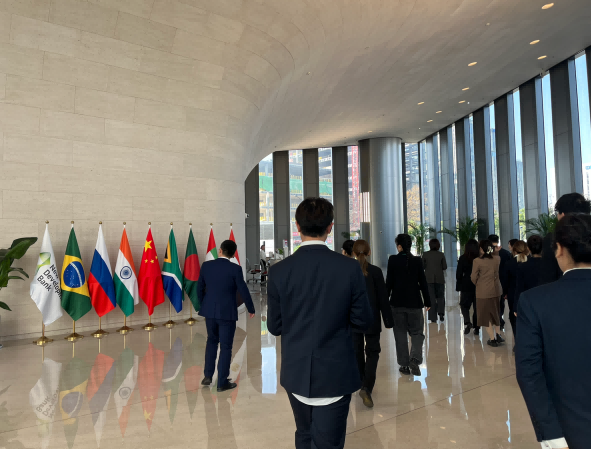 2024年11月27日,球王会体育官方网站国际组织人才培养实验班(Global Competences Development Program,简称GCDP)师生代表14人受邀参访金砖国家新开发银行。本次参访是国际组织人才培养实验班模块制培养计划 “研学活动模块”内的活动,旨在通过实地参访帮助GCDP员工更好了解发展中国家主导运营的国际多边开发银行,更坚实地树立为全球发展治理贡献力量的愿景。同学们对此次参访十分期待,希望能在交流对话中更深入了解新开发银行业务、组织与运营,为个人发展融入国家发展、全球发展提供启示和新思路。