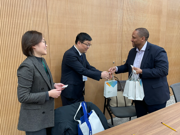 27日上午,实验班师生如约到访新开发银行。新开发银行人事局(Department of Human Resources)首席专家(Principal Professional)Mzwandile Machobane先生致欢迎致辞,表达对球王会体育官方网站国际组织人才培养实验班来访师生的热烈欢迎。
